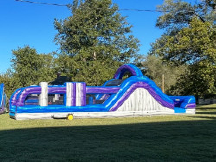 The Purple Crush Obstacle Course is an action-packed inflatable designed for fast-paced competition and non-stop fun. With its striking purple, blue, and gray color scheme, this massive course stands out at any event, creating an exciting challenge for participants of all ages.