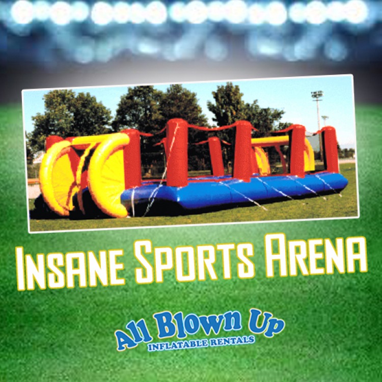 Our colorful Insane Sports Arena will provide hours of family entertainment. Your guests will enjoy being able to play all kinds of sports in one great inflatable arena!