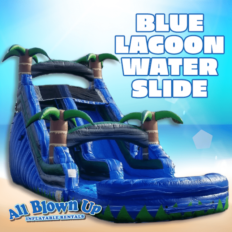 This Blue Lagoon Water Slide will bring a little bit of paradise to your next backyard party. The 18’ slide will make your guests have a slippery, sliding good time!